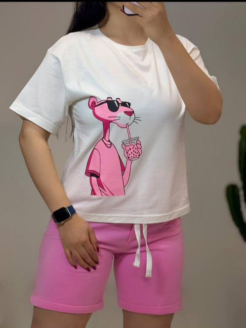 ست تی‌شرت شلوارک دخترانه و زنانه پلنگ صورتی 💖