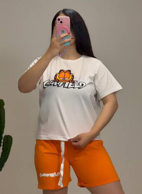 ست تی‌شرت شلوارک دخترانه و زنانه گارفیلد 🧡